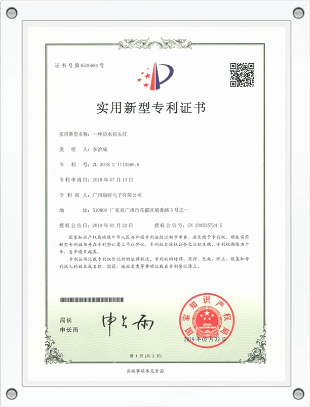 Utility Model Patent Certificate