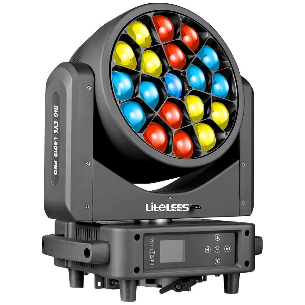 ▪ BIG EYE L4019 PRO is a powerful LED moving head wash light with 19x40W RGBW OSRAM LEDs. It creates 3 times the brightening! with individual pixel control. Infinite rotating front lens creates stunning vortex and kaleidoscope visuals.
