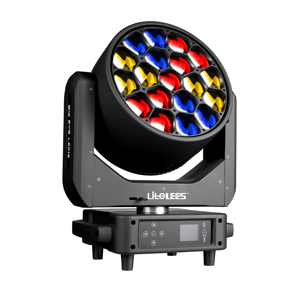 ▪ BIG EYE L6019 PRO is a NEW Patented Rotating Lens System, super high-power with 19x60W OSRAM RGBW 4-in-1 LEDs wash and beam moving head, for intense brightness and precise color blending. Designed for professional use in big concerts, stages, events, and installations, it delivers exceptional visual performance and creative flexibility.